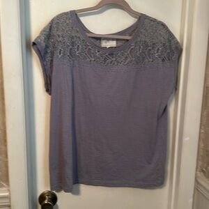Roz & Ali Lace Overlay Top Size 1X NWOT