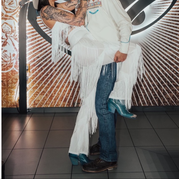 These pants are exactly as pictured! They are beautiful and the seller even wrote a cute note 🥺. Can’t wait to wear them for my bachelorette party!