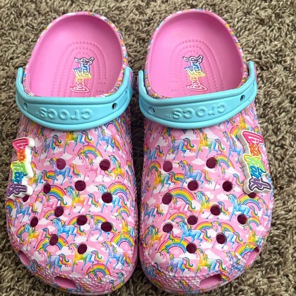 Awesome crocs! In great shape as advertised. Awesome Lisa Frank design. Packed well and shipped quickly. Thank you so much!