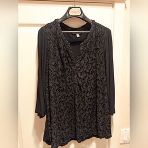 Plus Size 2X Market & Spruce Black Knit Blouse by Market w/Battenburg Lace Front