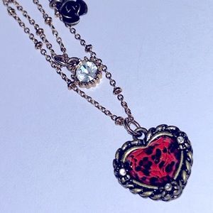 Vintage Betsey Johnson necklace pink & gold leopard
