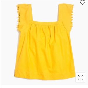 J Crew Factory cotton poplin top with pom poms