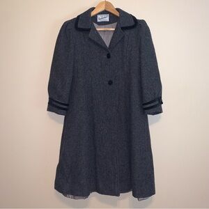 Grey Wool Coat Trench Long Jacket Vintage Winter Preppy