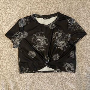 black and white cropped shirt w twist in front, size XL