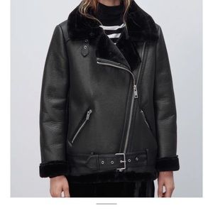 ZARA WOMAN BLACK FAUXFUR COLLAR FACEDBIKER JACKET