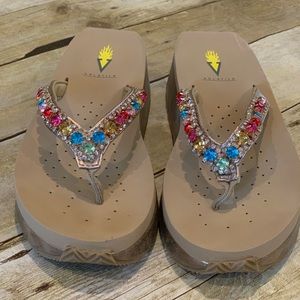 Volatile Shinebright wedge flip flops size 7