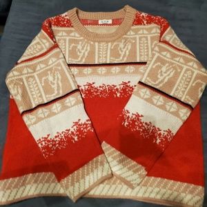 Festive Red and Cream Women's Sweater