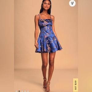 Perfect Date Royal Blue Satin Jacquard Sleeveless Mini Dress (small)