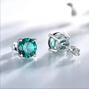 🌟 Sterling Silver 925 Emerald Stud Earrings