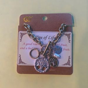 Tri-Tone Chains 3 Crystal & Lavender Beads Necklace and Chain Tassels