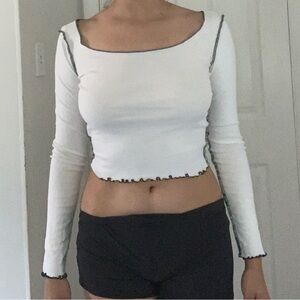 Wild Fable Green Ribbed Crop Long Sleeve Tee