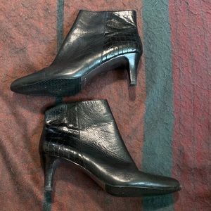 Vintage Tahari Black Leather Point Toe Ankle Boots size 7 1/2.