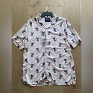 Hollister Pink Pineapple Hawaiian Shirt Large