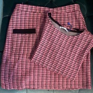 ZARA High Waist Plaid Tweed Skirt and Shit Set