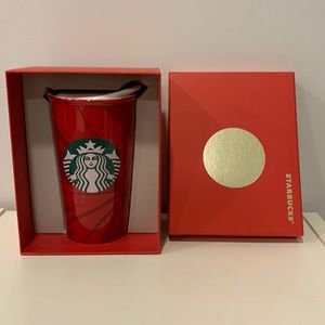Rare Starbucks 12 oz hot glass tumbler in red pattern