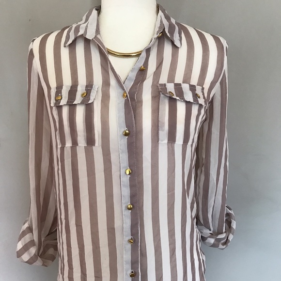 Super trendy striped blouse! Gold embellishment