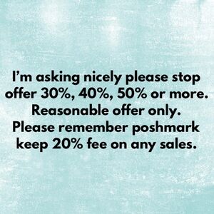 @carw14 I offer you 20% off. You still refused and want lower. I can’t accept it. Posh fees and it’s brand new with tag. You want me lose more by offer cheaper shipping, is that fair to me? No.