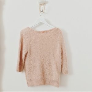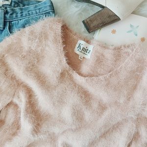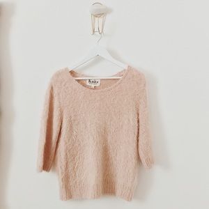Great condition Knitz by For Love and Lemons Ski Bunny sweater. Love this gorgeous sweater! It’s soft, fuzzy, and a light pink. Features 3/4 sleeves and stretches to fit the form of the body.