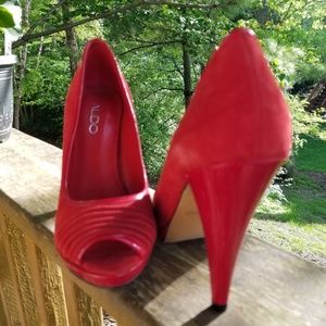 Absolutely eye catching Red peep toe heels. Leather and suede. 4 1/2" heel w/1" in front. Stunning!!!