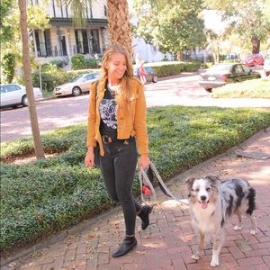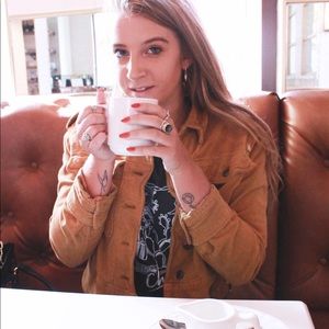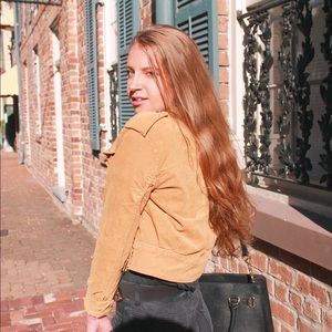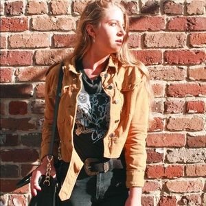 Super cute mustard jacket from Free People that features white embroidered star details. Love this jacket but selling because it's a little too small on me.