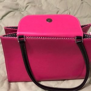 Bag that closes with magnets inside and zippered pocket inside 👱🏻‍♀️handles 10 inches.