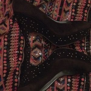 Suede brown pumps, worn twice both to an interview both times, H By Halston, still wrapped with 📦