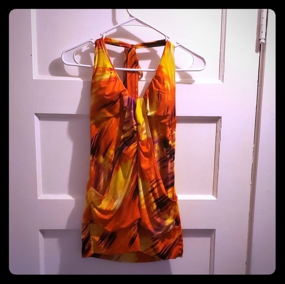 Very soft and silky feeling halter top from Wet Seal only wore a few times, in excellent condition. Comfortable fit. Smoke free/pet free home. There is no bra, but there is a light pad on each of the cups. Like on a swim suit top.