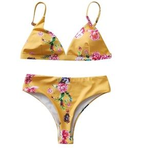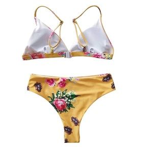 About: fits like a 4-6 • Polyester+ Nylon • Thong high waisted tummy control bikini set • adjustable shoulder strap • plastic back clasp