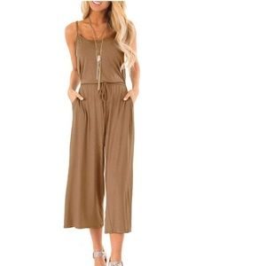[Women's Casual Loose Sleeveless Spaghetti Strap Wide Leg Pants Jumpsuit Rompers with Pockets]