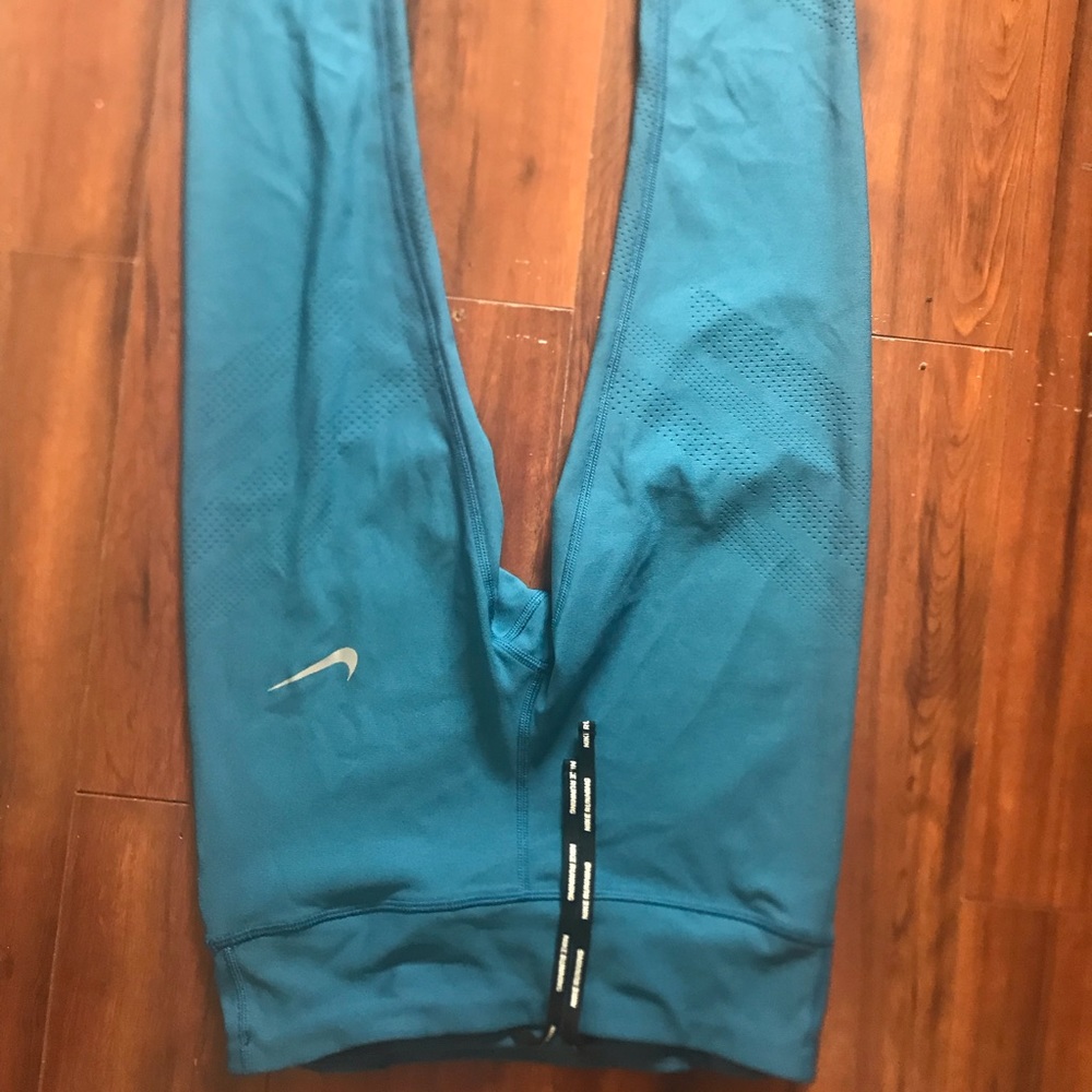 Nike capris dri-fit size small fits to mid-calf worn once. Great detail. Very comfortable. Light blue.