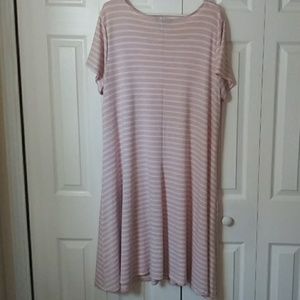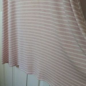 Cream and light peach horizontal striped short sleeved dress