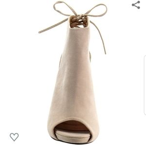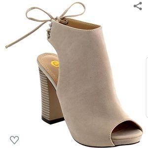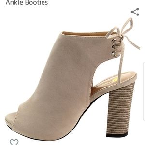 These chic ankle booties are featuring a super soft faux suede upper, peep toe, cut out look with back adjustable laces, finished with a high block heel, it's perfect for your dress or jeans.