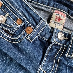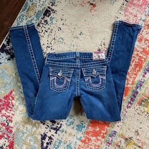 Like NEW. Girls True Religion skinny jeans . Horse shoe stitching on back pockets .