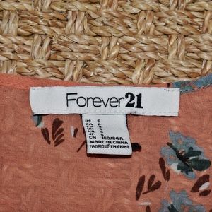 Orange blouse with blue flowers on it. Bought from Forever 21. Size S but fits L as a crop top. Very see-through.