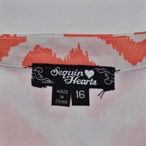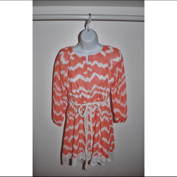 Super cute orange dress with white chevron pattern from Sequin Hearts! Lace wrap-around can be taken off. Thin white layer underneath.