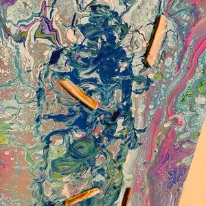 This painting represents plastic water bottles in the ocean and people need to recycle โป๏ธ