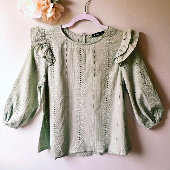 Lovely green top with ruffled shoulders.