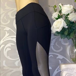 Snug fitting lululemon leggings with mesh design. Comes with a zipper pocket on the left side and TWO pockets on both sides. Gently worn a handful of times. NO damage of any kind.