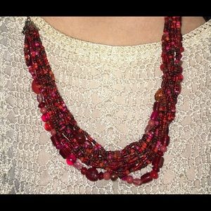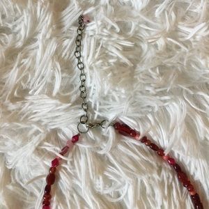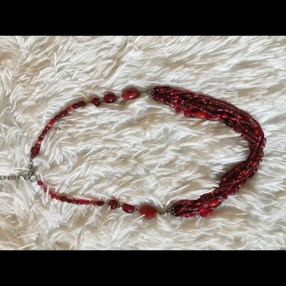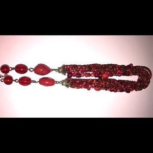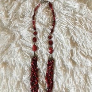 This staple necklace is crafted beautifully with different red beaded shades and shapes.