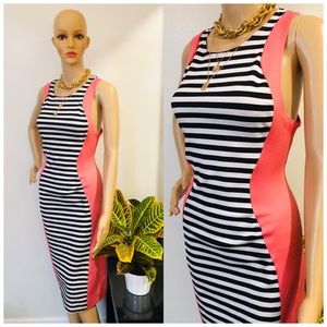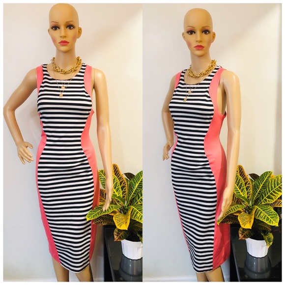 Stripe Fitted Sexy Dress.Zip back.Stretchable.