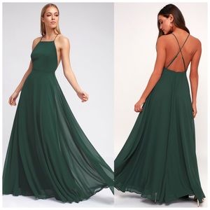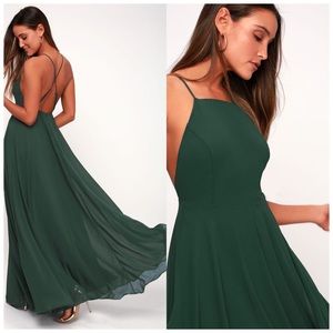 LULUS Mythical Kind of Love Dark Green Maxi Dress.