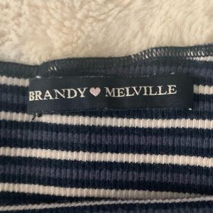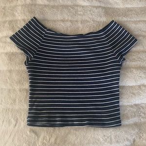 OS brandy melville blue, black & white striped ellery off the shoulder top.
