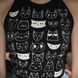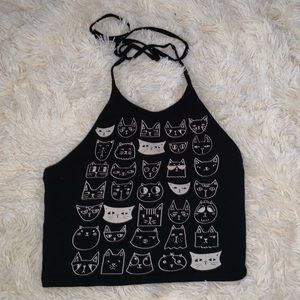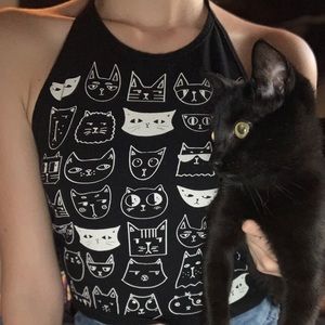 SM Toi Moi cat graphic open back halter top