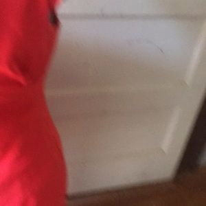 Form fitted coral/red dress. Hits about mid thigh for me and I’m