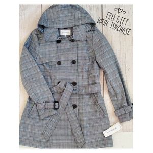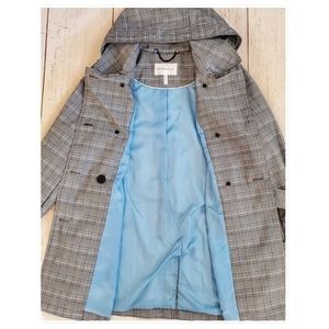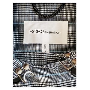 Bcbg women's asymmetrical button belted coat with hood. Approx. 28" Length And 22" Sleeve. Exterior 98% Polyester And 2% Spandex. Interior Lining 100% Polyester.
