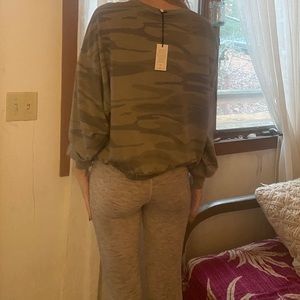 Camo print raglan sleeves they kind of are looser at the top then come in at the wrist