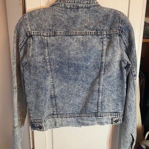 Cute comfy jean jacket perfect for pins or patching one sleeve has stitching up the side