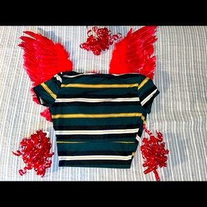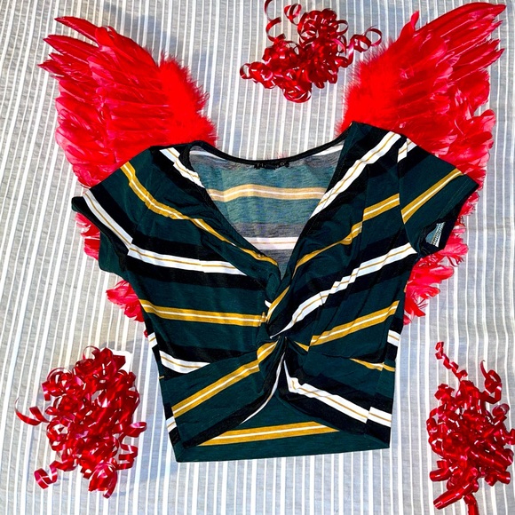 ꧁crop top with neckline, striped style with yellow, white and dark green color꧂