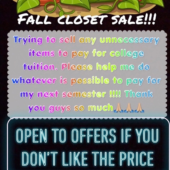 Thank you all for buying from my closet I greatly appreciate it!!! I have items on OfferUp and Poshmark!! If youβre interested in any of these Iβll have the account names and links listed below!!!