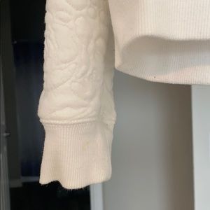 White, floral pattern crew neck sweater. So comfy & so cute - could dress it up or dress it down 💓